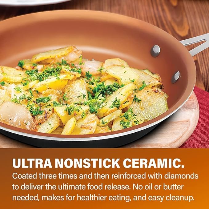 Gotham Steel 12 Piece Pots and Pan Set, Non Stick Cookware Set, Pots and Pans, Pot Set, Pot and Pan Set, Cooking Set, Ceramic Coated, Ultra Durable, Oven and Dishwasher Safe, 100% Toxin Free – Copper
